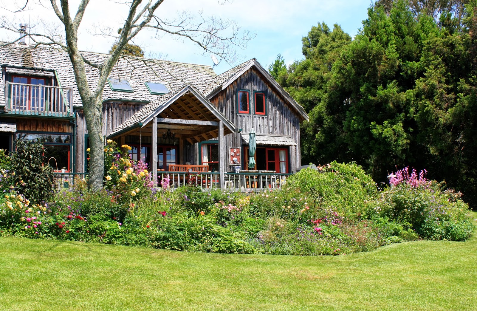 My favourite garden was stunning, sweeping down a hillside from this 1970's wooden house:
